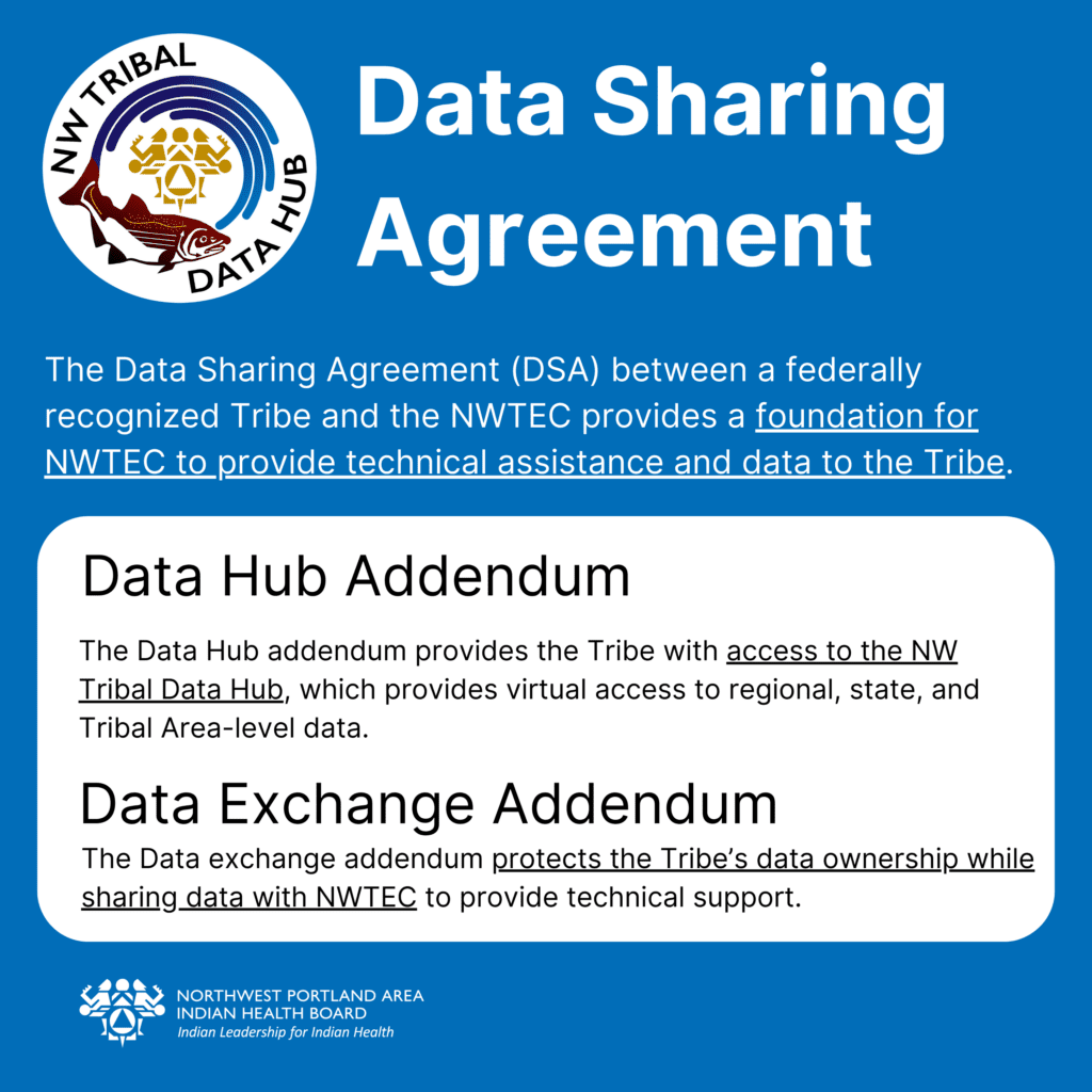 Step 1: Complete a Data Sharing Agreement and Data Hub Addendum and email to DataHub@npaihb.org.